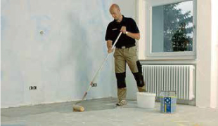 施工時請使用滾筒托盤。最佳施工條件為氣溫 15-25° C , 相對空氣濕度40%-75%。低溫、較高的空氣濕度會延長干燥時間。高溫和較低的空氣濕度會縮短干燥時間。不同基層選擇不同界面劑,施工前需要確認基層的種類。 -